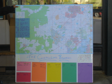 Impact: The students took it into their hands to organize a bike/walk to school day which turned out to be agreat success! One hundred and twenty students and teachers participated, and the morning of October 8th, 2008 found the New Vista bike rack completely packed! The students created a colorful carpool board to help their peers identify potential routs to school, and also created artwork on the theme “imagine a car free world.” As a final culmination of their project, the CAP students presented their wok to the staff of the University of Colorado’s Environmental Center. The presentation took the form of a panel discussion in which the students explained their action project and answered questions from the audience. When asked, “who will take what they have learned and apply it to their lives,” every student raised their hand!