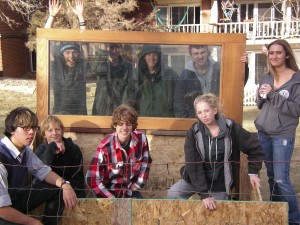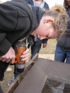 A cold-frame is basically a small green-house that is low to the ground that keeps off the frost on cooler days at the beginning and end of the growing season. It works by trapping the heat of the sun under a window or door that allows access to a small box which contains the plants and the heat. The cold-frame came together quickly with donated and repurposed materials from ReSource in Boulder and friends of students. Just over 6 feet long and 3 feet high, their cold-frame should shelter many starts this spring as they bring their pollinator garden back to life.