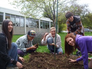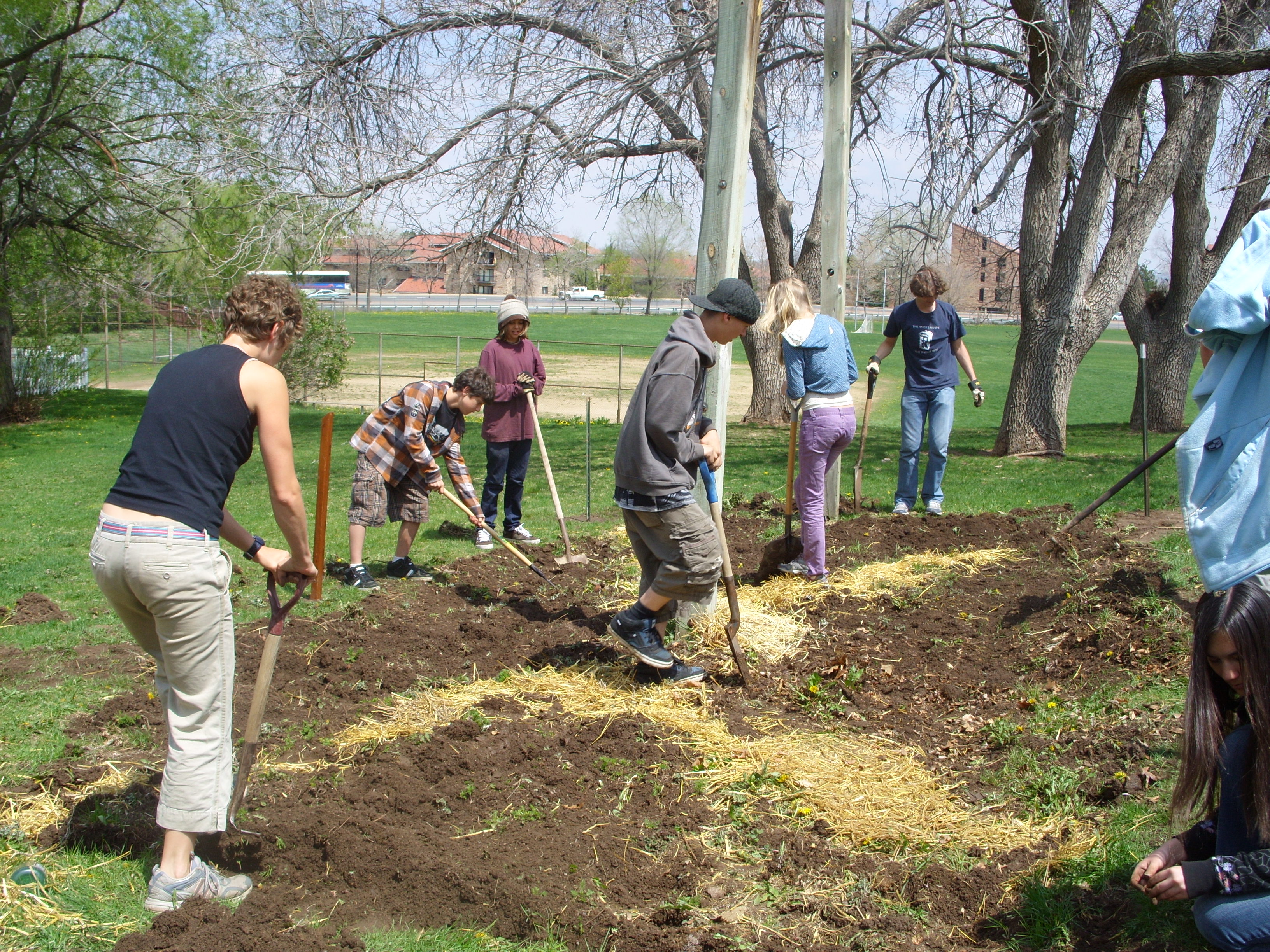 Students toughed it out in less than ideal weather (rainy and 40’s) to create New Vista’s own local food and pollinator garden. We’ll be putting the fence up this week and preparing for our grand opening later this month!