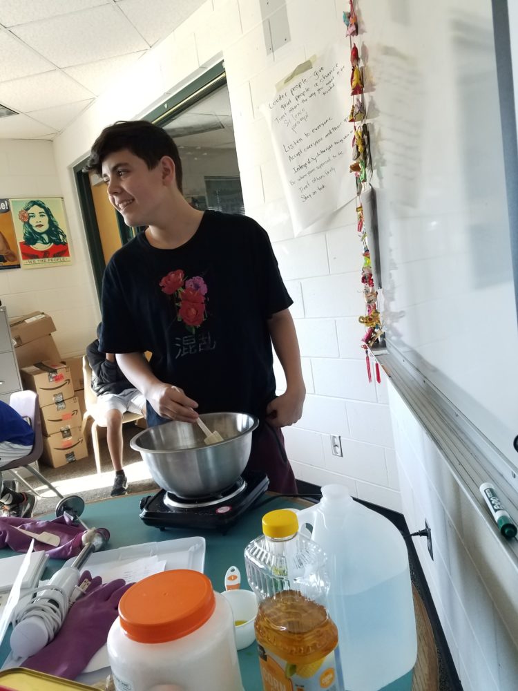 We ended up testing and modifying recipes so that they would actually work. We made some great lip balm and finally learned how to get a good lotion consistency. With the help of local soap-maker Ann Macca we learned all about the chemistry of making soap and made some cool citrus soap. And one of the most important things we learned is that our personal choices in products can affect more than just our own health. Jack, a CAP student says, ”Personally, my favorite part of this project was when we made the sunscreen. It was a lot of fun and it was a interesting task at hand but we did it. It was also great to see all the great feedback we got from everyone. Also, it was interesting to learn that certain chemicals that are put in sunscreen can cause harm to reefs. Now I know what type of sunscreen and lotion I should buy.”
