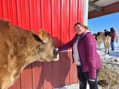 Changemaker Alumni students pet an animal during their service day at Luvin' Arms Animal Sanctuary.Our Alumni are still passionate about social and environmental justice even after they graduated, and they are committed to keeping the bonds of service and friendship alive. They organized a day of service with Luvin’ Arms Animal Sanctuary as a way to make the world just a little better. They invited others in the CI community to join them in making enrichment toys for rescued farm animals using recycled fire hoses. Nancy, the kind and fabulous Luvin’ Arms Volunteer Coordinator, first introduced everyone to all of the pigs, sheep, goats, and cows. They made time for lots of hugs and belly scratches before they got down to the creative business of making toys for their new friends. Before the end of the frosty day, they installed some of the enrichment toys and got a chance to watch the animals’ curiosity as they explored and played. They ended the day with the satisfaction of making the world a better place while also enjoying each other’s company.