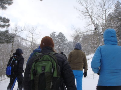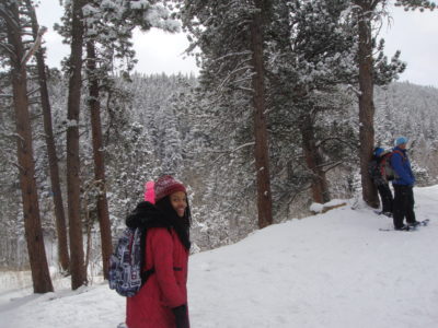 the semester; A Winter Field Day at Caribou Ranch. We took 17 students, Keith Truitt from DGS, CAP Instructor Colleen, and 4 other Cottonwood Institute instructors. We drove up into the mountains to do some snowshoeing and winter activities. During the ride up, it was a little sad not to have our phones with us, but we were able to talk, hang out with our friends, and make each other laugh.