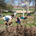 It was a wonderful final quarter with the Community Adventure Program at New Vista High School this spring! The class joined together to create an action project around gardening and the appreciation of simply grown local food. We visited Growing Gardens and the Flatirons Neighborhood Farm to glean some local information from amongst the many knowledgeable folks in Boulder. The class worked hard on the garden transformation: turning the soil, picking out grubs, planning and planting beds, building a raised bed, and finally showing off their hard work with garden tours on Exhibition Day!