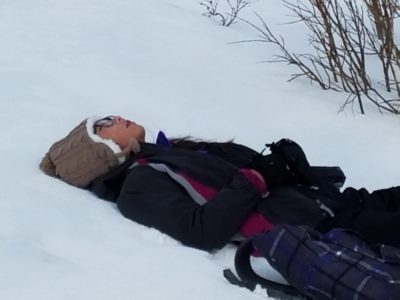We learned to walk in snowshoes, and laughed a lot when we learned why we wear snowshoes. The snow was a lot deeper than we thought. We learned to build leave no trace fires in the snow and sat around and drank hot cocoa with our friends. We experienced the ultimate peace and quiet when we got in the quinzhee we had built. The thick snow walls insulated us from outside noise leading one student to say that was the most quiet he had ever heard. After returning from our trip, the students were asked to reflect on their experiences by writing a poem. Here are three that will hopefully bring you some measure of the peace we felt that snowy Saturday.