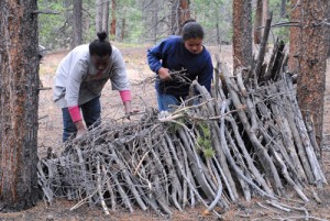 Sunday began bright and early with breakfast burritos and packing up camp, but the adventure was not over. The students ventured away from camp for a short hike and a shelter building competition. After the kids watched a quick demonstration of a debris shelter, they broke into groups and had an hour to build one of their own.  Whose would be the best?  Turns out they all were!