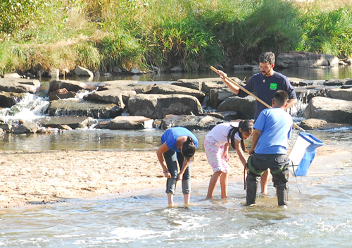 In partnership with Keep it Clean from Drain to Stream (KIC), a water education campaign led by Denver Public Works, Denver City Councilwoman Judy Montero kicked off the event with her inspiring opening remarks and encouraged students to do their part to help keep Denver’s water clean. Approximately 25 students and 10 volunteers performed a variety of tests along the South Platte River to check the water quality for the wildlife that call it home and for the people that use it for recreation.  Students performed several water tests including, pH, turbidity, temperature, and dissolved oxygen, waded in the water in search of macroinvertebrates, and participated in an interactive game called “The Incredible Journey” to understand the water cycle.