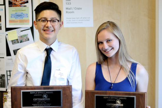 A highlight of the 2017 Base Camp Bash to benefit Cottonwood Institute is the Ripple Effect Award. The Ripple Effect Award is given each year to two outstanding students and is all about celebrating how our smallest actions, even those we can’t immediately see, can ripple out into the community to have an even greater impact.