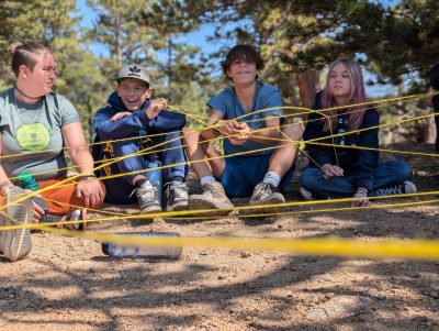 Upon arriving at Mud Lake, and learning about ponderosas, the students ran over to the red hued trees to discern if there were more butterscotch or vanilla notes in the sweet smelling sap. They threw themselves into team building games and environmental education games with excitement and huge smiles.