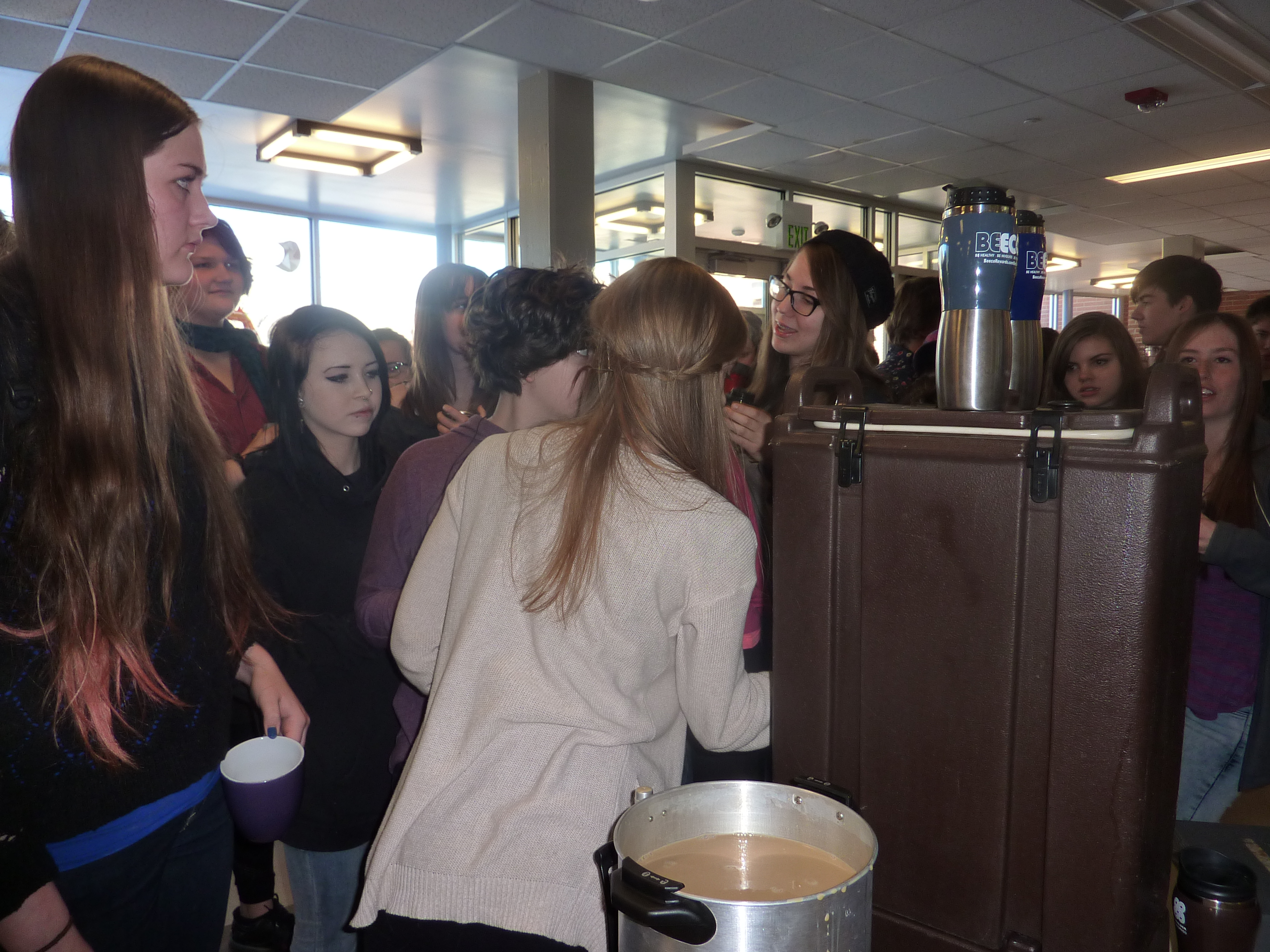 Many students showed up with reusable mugs making this a very successful event. An ample amount of chai and coffee was donated, and it was all successfully consumed by the large groups of students and staff who attended each time the beverages were being served. There was dairy-free chai available this year which satisfied more students and staff. More chai was brought in this year than in past years, which also made a better outcome for this event. Many New Vista students are helping to change the school and their behavior by producing less waste at events like these and hopefully in their lives outside of school.