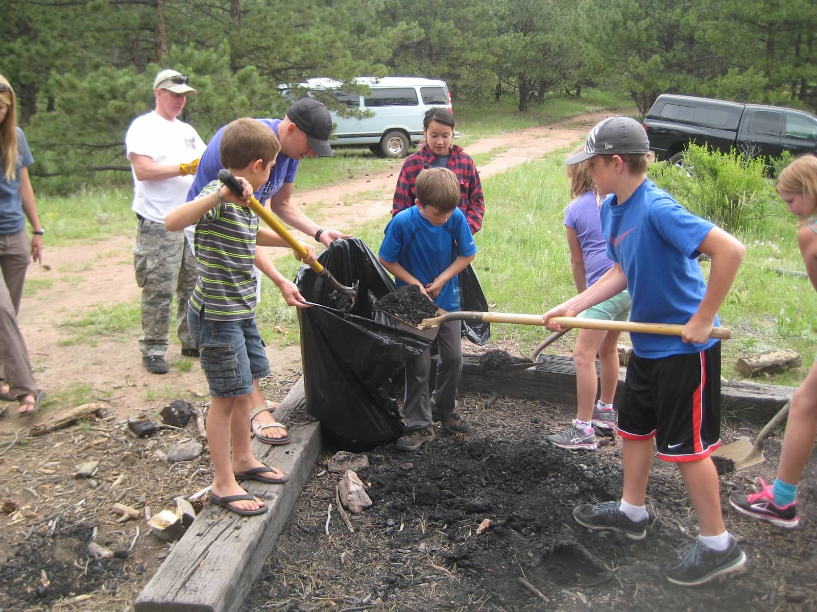 Cottonwood Institute Military Kids ProjectThe next morning we all wiped the dew off of our tents, and packed our belongings into the vans as soon as we woke. After a light breakfast, we took some time to participate in our second community service activity of the weekend.  These opportunities really help to enforce the idea that we all need to take ownership of our surrounding environment. It was impressive to see such dedication and stewardship from the kids, as we picked up an obscene amount of glass shards around a historic house at our campsite (which was built at the turn of the century completely out of stolen railroad ties).